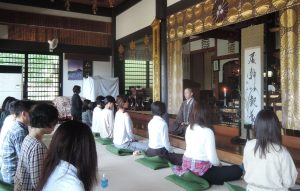 本堂でお線香の香りに包まれながら、仏教にまつわるお話を聞いていただきま